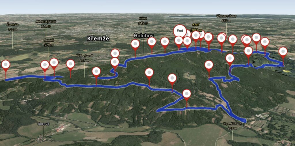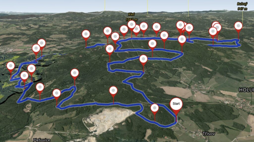 Start / cíl: Třísov, Holubov, Český Krumlov – 48.8787425N, 14.3406725E